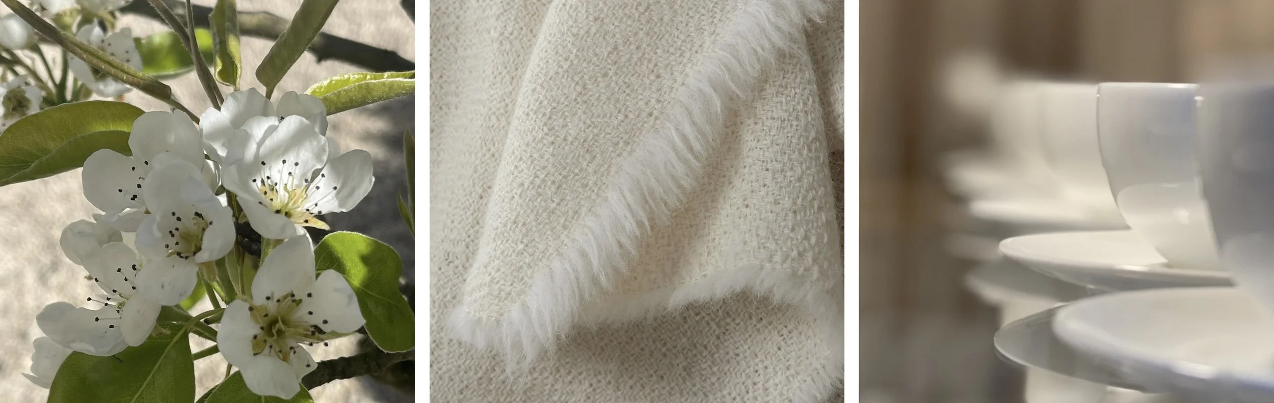 Het buitenseizoen begint. De perenbloesem staat rijkelijk in bloei, Altijd het begin van een nieuw seizoen. Lichter, zachter, met aandacht voor materiaal en comfort.